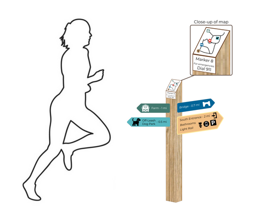 We focused on three signs we felt were most impactful to the park experience: the park guidelines sign, the pet leash-and-scoop sign, and trail navigation signs.
